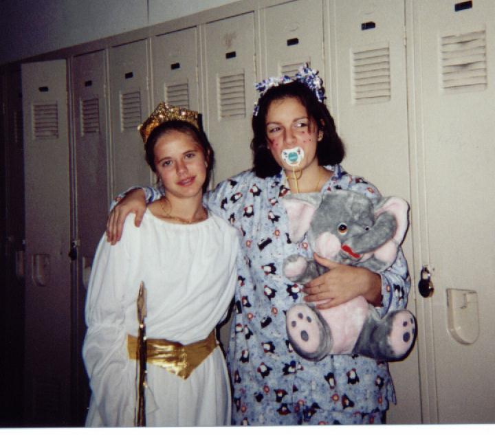 | This is me and Kim for Halloween in front of our lockers. I'm the baby and she's the princess..aww..